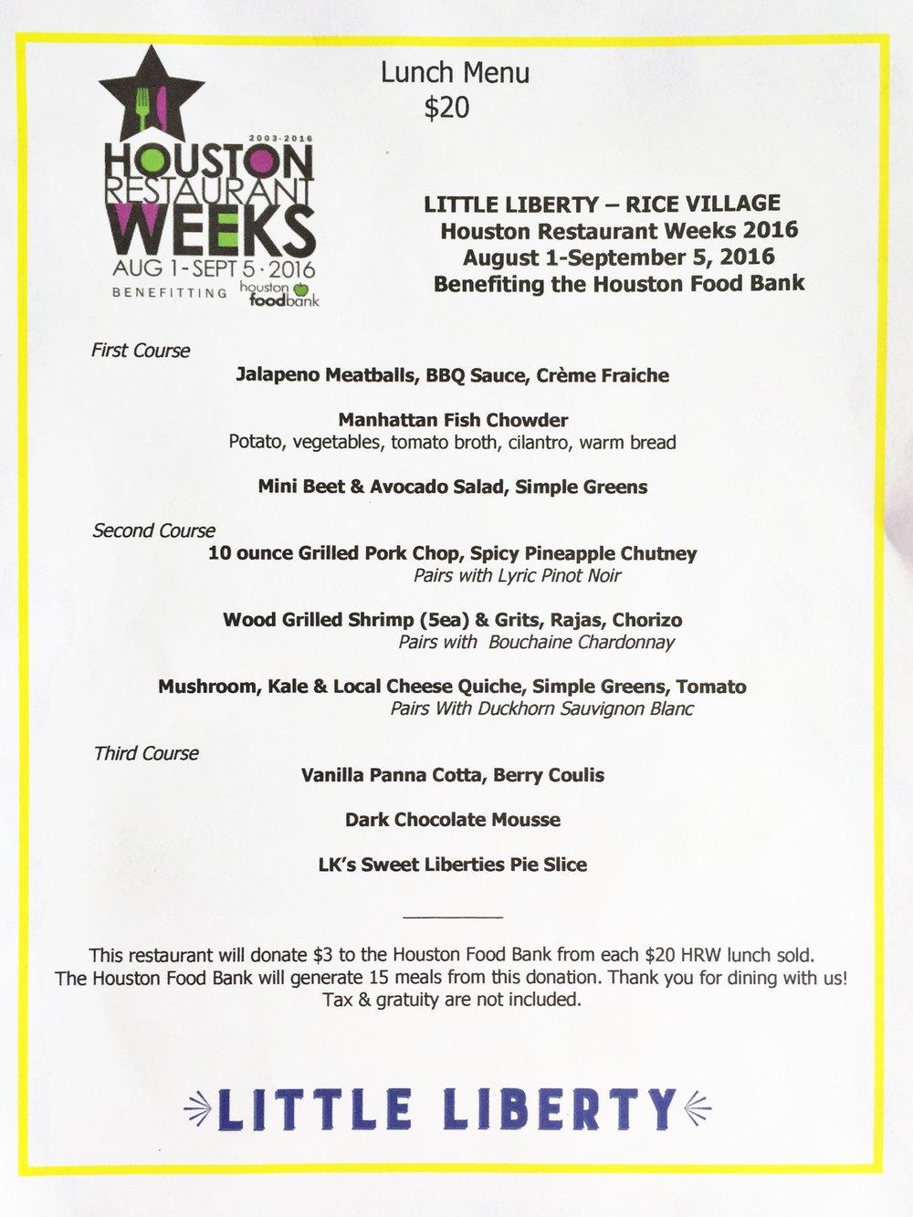 Outside of Christmas, Houston Restaurant Weeks is my favorite time of the year. During the month of August each year, many casual and fine dining restaurants create a special menu and give a portion of the proceeds to the Houston Food Bank. Great right? Not just are they giving to the worthy cause of ending hunger, but the special menus they create are also cheaper options for us enjoying the meal.