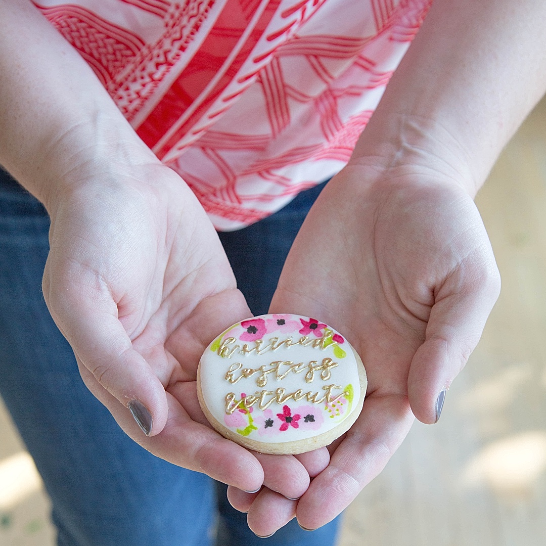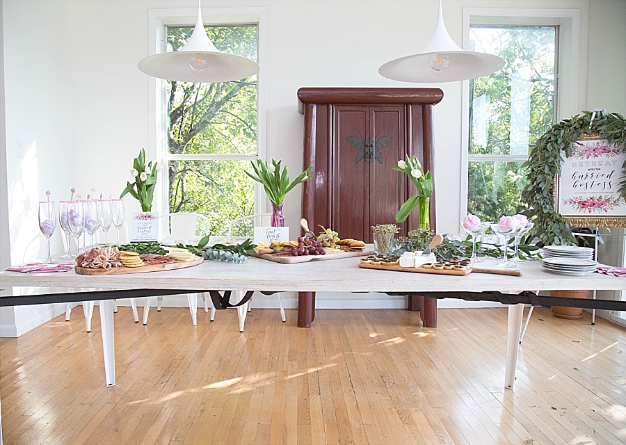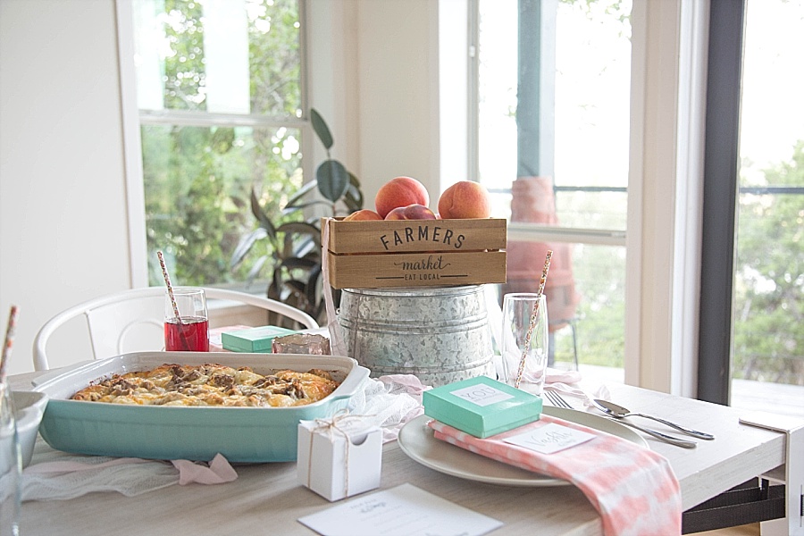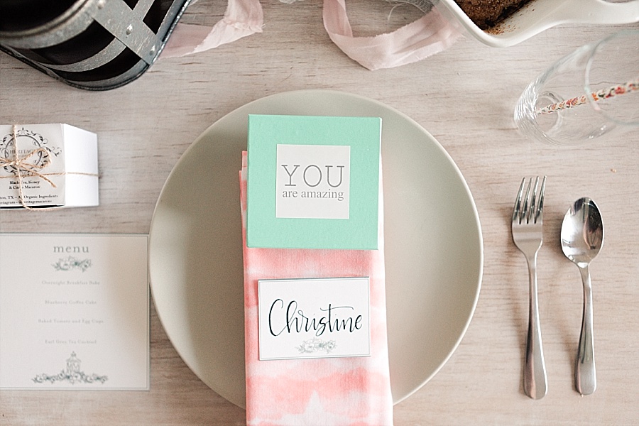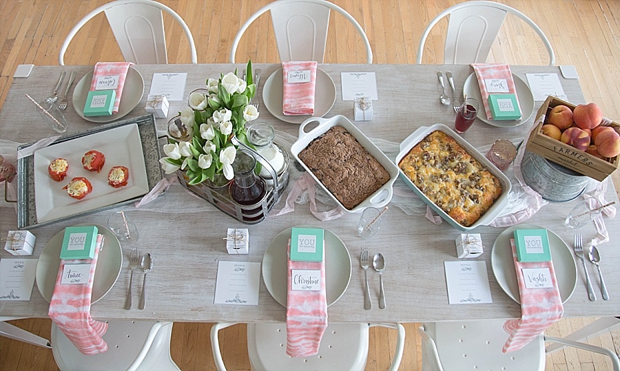 The last day, we had a ladies brunch before everyone headed home. I used the Vintage Farmhouse Party Package and made a blueberry coffee cake, tomato egg cups, and a breakfast bake. I used Fixer Upper style decor, Wolf & Irving napkins, Sweets & Treats floral paper straws, and our amazing sponsors had even more goodies for the guests. The Silver Loft provided beautiful rose gold cuff bracelets and Heritage Macarons gave us a sweet treat of her beautiful macarons.