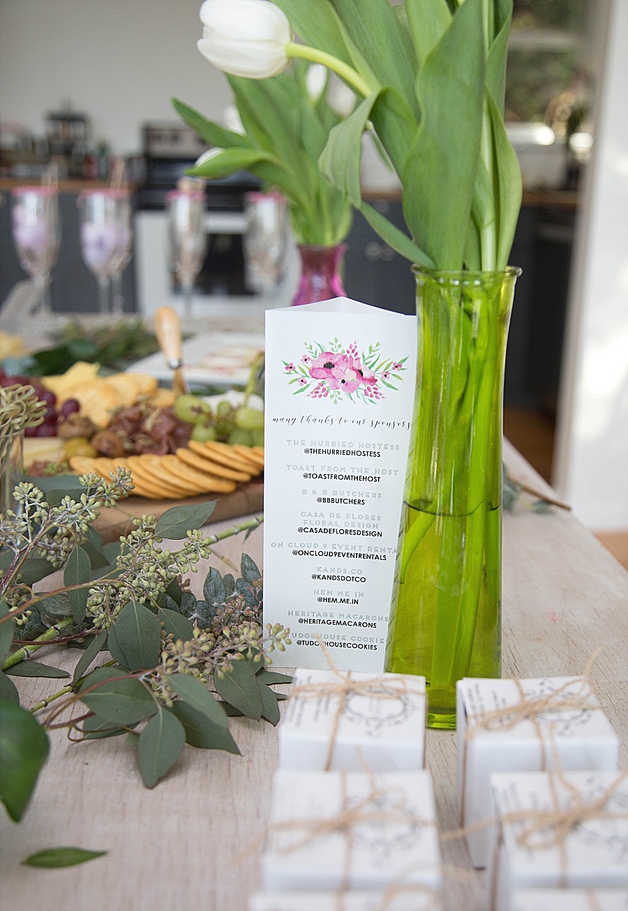 Upon arrival, our guests were greeted with swag bags that were stuffed full of goodies. The generous sponsors included: inspiration prints from Lumitory, match boxes from Rewined, Drippings Springs Vodka, LZ Pencils, Gerolsteiner Sparkling Water, photo inspiration books from A Beautiful Mess, hand towels and notebooks from Papyrus, natural deodorant from Humble Brands, designer aprons from Bon Aprontit, and spatulas in fun colors from Get It Right.
