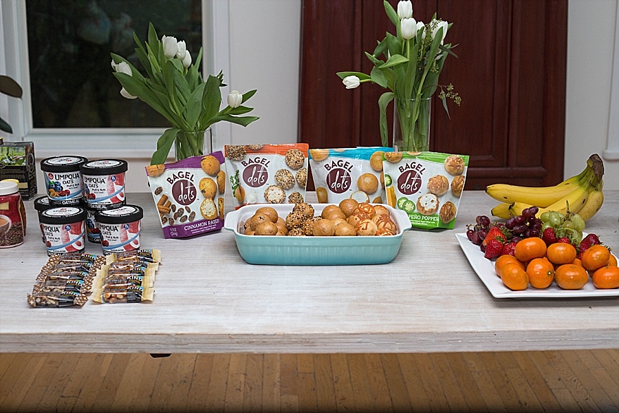 The next morning, we were up early and enjoyed a grab and go breakfast before we started our reflection time with Root + Restore. For breakfast, we had a spread of fruits, oatmeal, yogurt, Bageldots, Ocean Spray juices, granola bars, and protein shakes from Orgain.