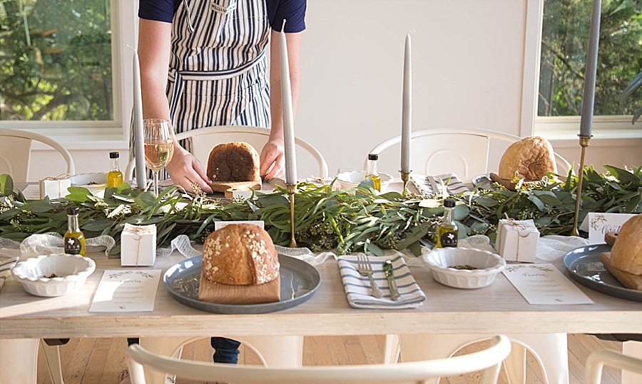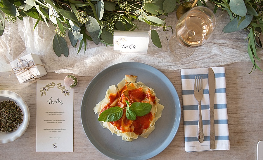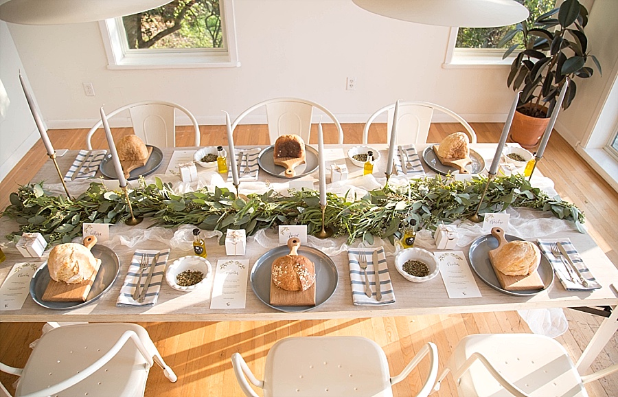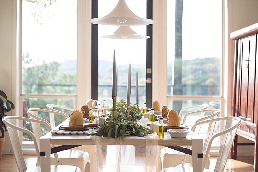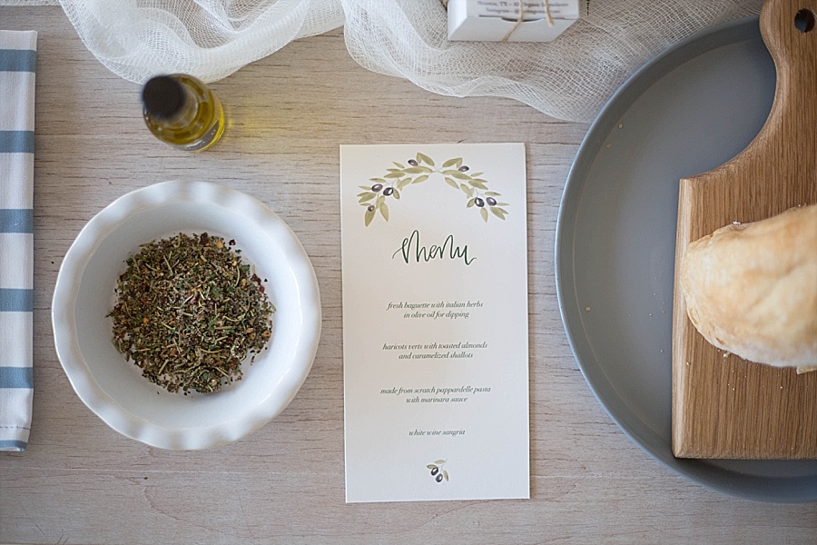 Dinner that night was my favorite part of the whole retreat. Then again, anything involving food always is! I decorated the table the Tuscany Party Package, served their homemade pasta, haricot vert, and a herb and oil dip with bread. A few other goodies were on the table as well, including homemade bread from Bread Man Baking Co, Heritage Macarons, dinner napkins from Wolf & Irving, mini cutting boards from Tree Climber Creations, greenery from Casa de Flores Floral Design, sangria from Bass Note Sangria, and fresh olive oil from 1836 Texas Olive Oil Co.