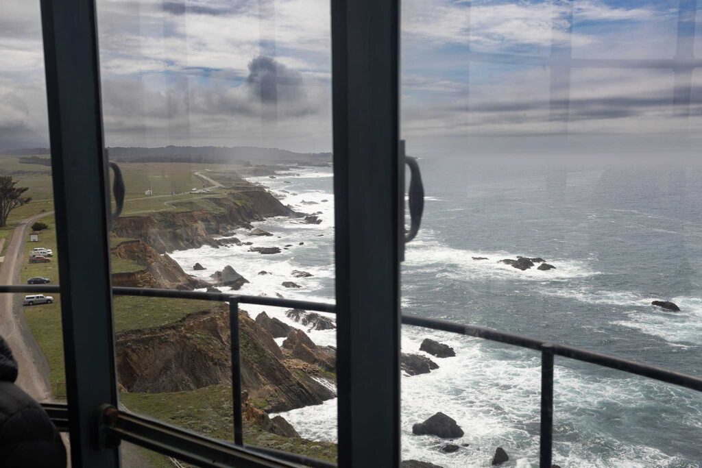 It is these bullseyes that gave the Point Arena Lighthouse its unique “light signature” of two flashes every six seconds. This incredible optic, that holds an appraised value of over $3.5 million, is set in solid bronze framework and was built in France. In 1975 the fog signal at the station was silenced and replaced with a radio beacon with a 50 mile signal that originates from the Tower to assist mariners in navigating the Mendocino coast, but you can see this lens in the Light Station (gift shop).