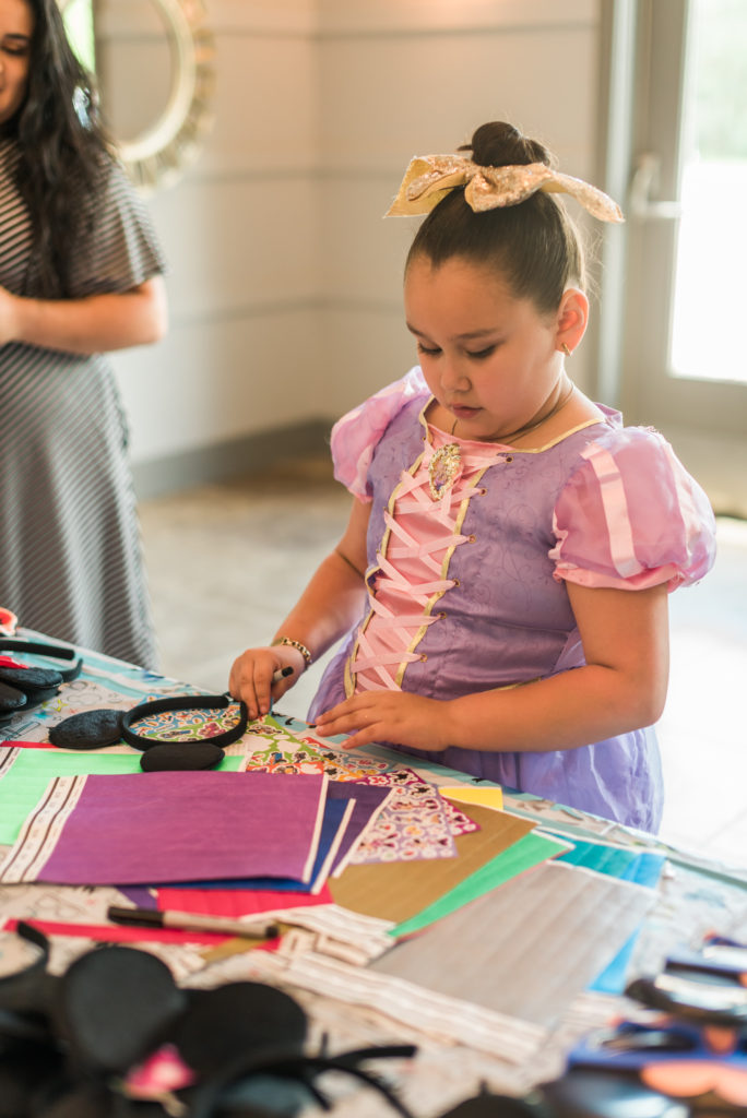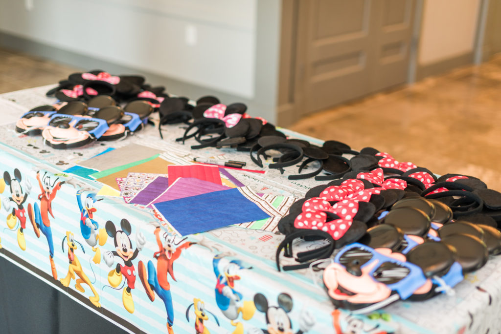 Upon entering the party, everyone came in just like they would at the park at got their Magic Bands and Mickey Ears. Guests got to decorate their “magic bands” with stickers and parents used sharpies to write their names on their wristbands. They then got to pick out their Mickey ears or masks of choice and get on to the partying!
