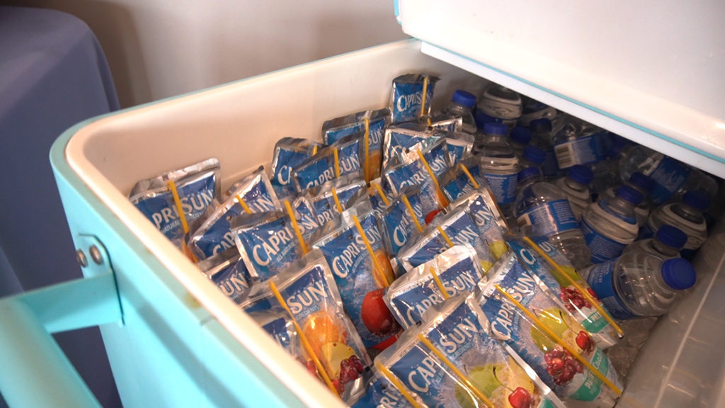 Now, what to drink? For the kids, I opted for mini water bottles and Capri Suns. They were easy for me to just put in an ice chest (aka “Under the Sea”) with some ice and the kids can open them themselves. For the adults, they had the option of the tiny water bottles or the “Mad Hatter’s Iced Tea” – aka Sweet Tea – a Southern girl’s party staple served in this easy to use beverage holder.