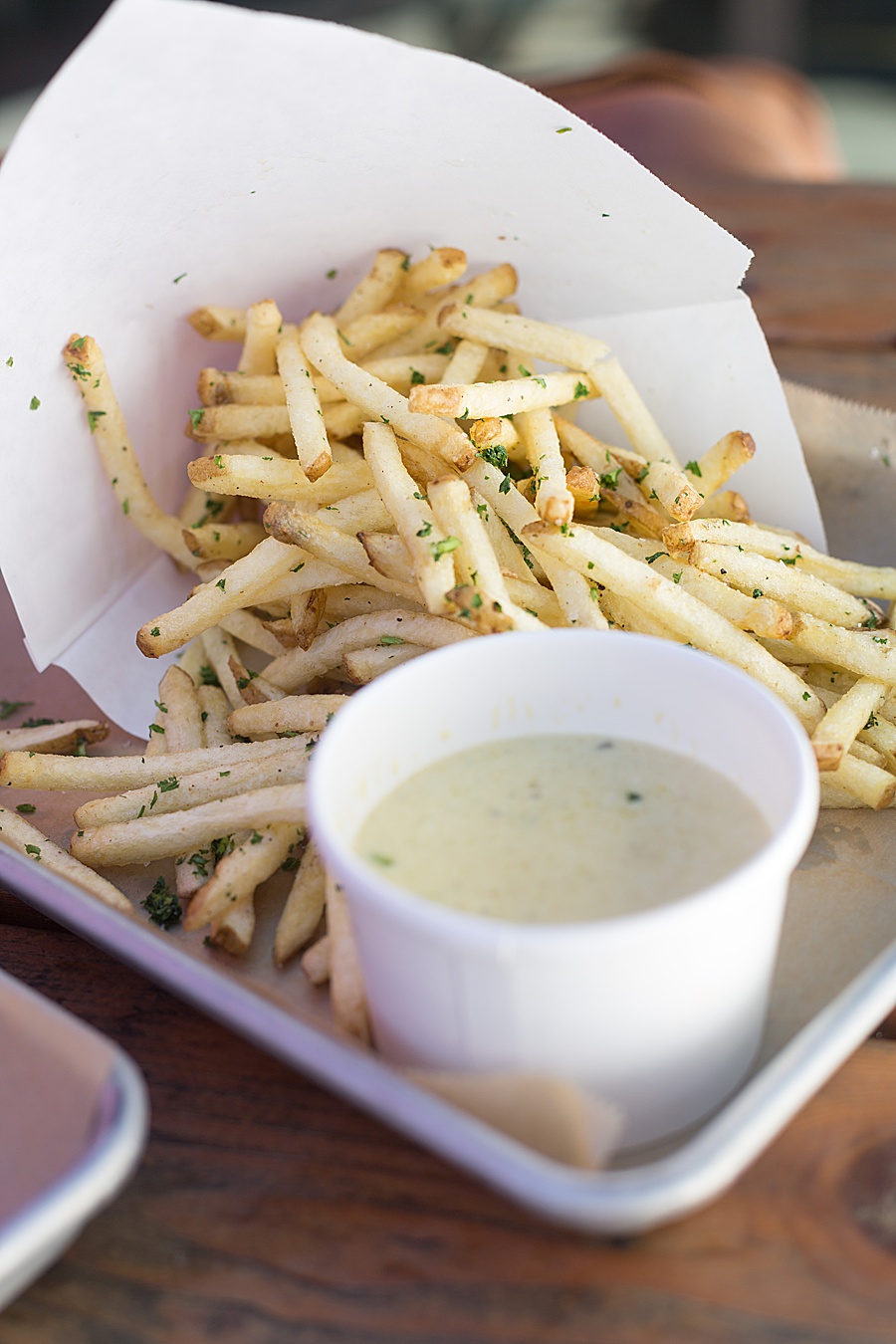 My friend joined me and she opted or the lighter option – the Thunderbird. This chicken sandwich was topped with bacon, pepperjack cheese, poblano peppers, avocado, pico de gallo, chipotle mayo and lettuce. I had a bite of hers and it was pretty good too. There was a ton of flavor in it and who can say no to avocado? For her side, she chose the parmesan truffle fries with truffle aioli. They were pretty good too, but honestly you couldn’t tear me away from my queso dip. Ha!