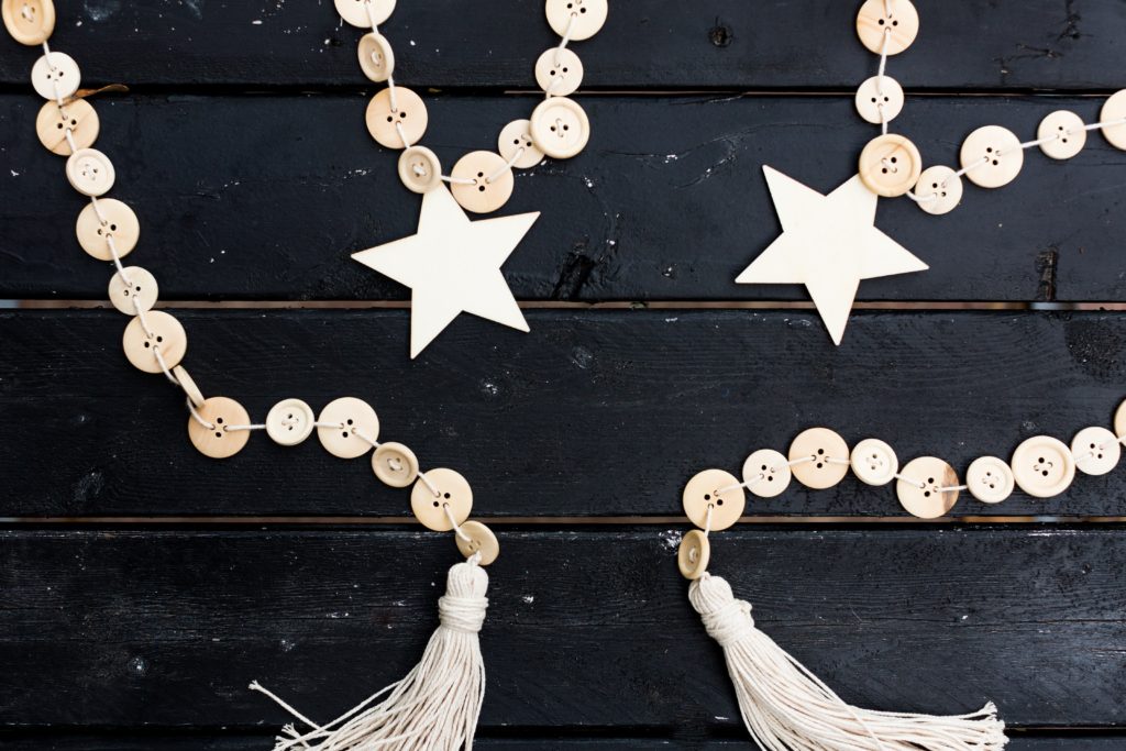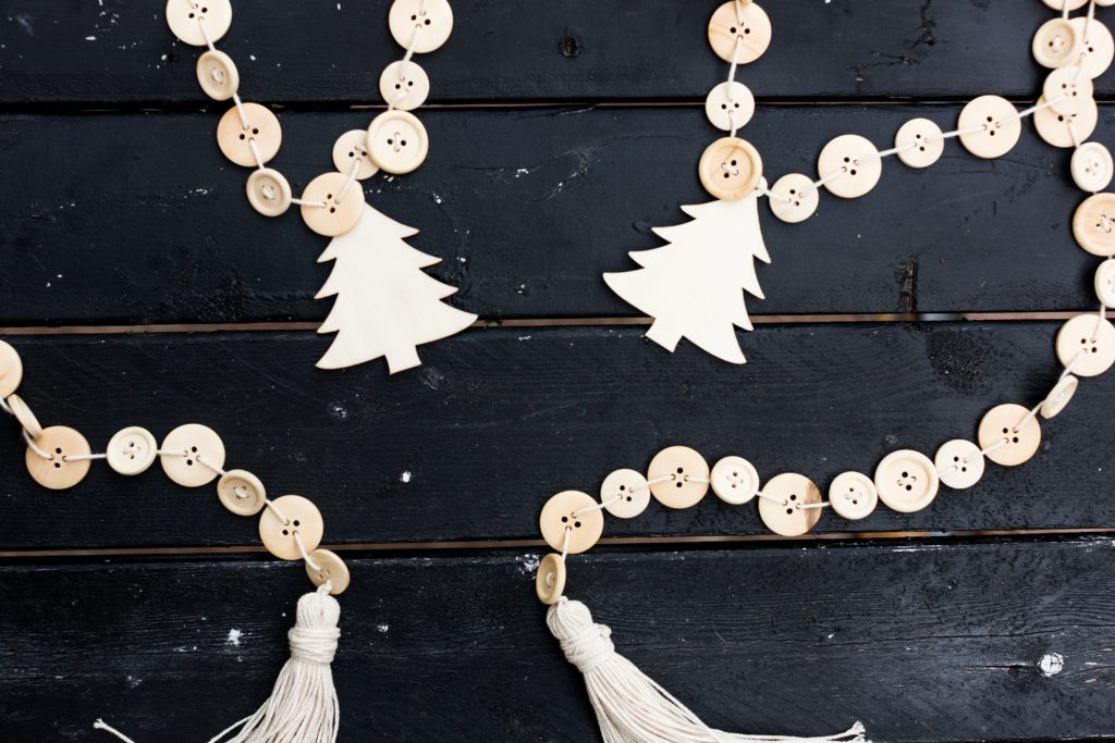 Any kids of button will work in making this button garland, but you’re going to want to make sure the holes are big enough that the twine can get through it. I used this bag of wood buttons and the largest ones (25mm) worked the best. I also used the 20mm wood buttons, but they were a little more tricky to get the twine through their holes cleanly.
