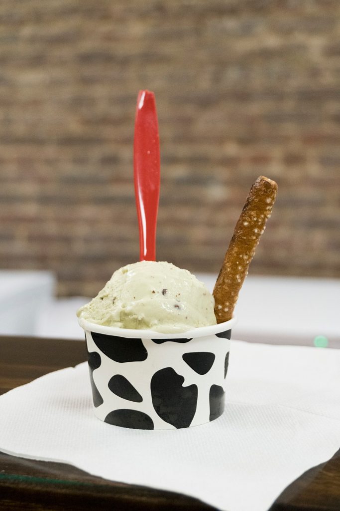 This place was awesome! The owners are so nice and they make all of the ice cream in house – both with dairy and dairy free. The chocolate velvet flavor was rich dark chocolate and my husband loved it in his shake. My son and I opted for the mint chocolate chip and it was really great too! They also served the ice cream with a pretzel stick and it was the perfect salty/sweet combination!