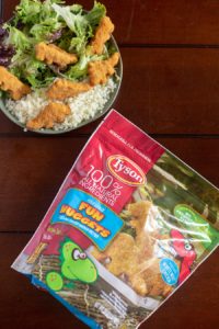 They’re all-natural chicken nuggets from chicken who were raised with no antibiotics, added hormones, or steroids. They’re a great source of protein at 10 grams per serving, and even better – my kids love them! I mean, what’s not to love when you can encourage your kids to play with their food?