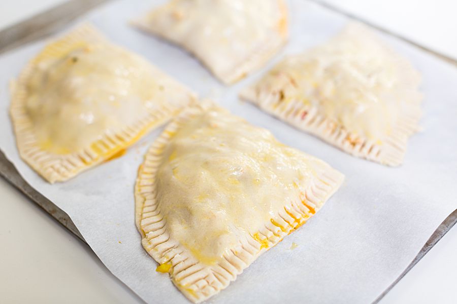 - Brush each empanada with egg wash. Bake for 35 min or until golden brown.