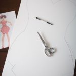 - First, flip over your colored board and trace out a dress design. You can do anything you like, but I opted to stay close to my inspiration dress.