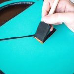 - Next, flip over your board and use either black paint or a black sharpie to go around the edges of the board. Make sure you cover the top and the cut side of the board.