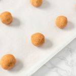 - Using a medium (2- tablespoon) cookie scoop portion out the dough and roll into a ball. Then roll each cookie dough ball into the cinnamon sugar mixture until coated.