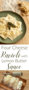 So, in an effort to find something I like, I made this lemon butter sauce. It’s super duper easy and you can make it even faster than opening up a jarred sauce and heating it up. Now, if you’re feeling fancy, you can also make this fresh, 4 cheese ravioli. It’s definitely not “hurried”, but it is really dang good.