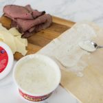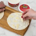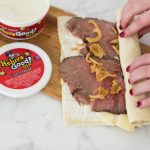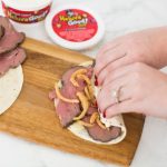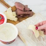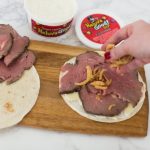 This easy appetizer has all of the best things in it – tortillas, Heluva Good!’s French Onion Dip, roast beef, cheese, and French fried onions.