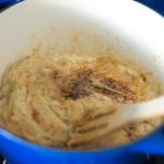 - Once the onions are browned (not burnt), add in the garlic. Cook for 1 minute. Next, add in the flour. Cook for 1 minute.