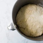 - Combine the water, sugar and kosher salt in the bowl of a stand mixer and sprinkle the yeast on top. Allow to sit for 5 minutes or until the mixture begins to foam. Add the flour and butter and, using the dough hook attachment, mix on low speed until well combined. Change to medium speed and knead until the dough is smooth and pulls away from the side of the bowl, approximately 4 to 5 minutes. Remove the dough from the bowl, clean the bowl and then oil it well with vegetable oil. Return the dough to the bowl, cover with plastic wrap and sit in a warm place for approximately 50 to 55 minutes or until the dough has doubled in size.