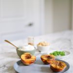 This recipe for grilled peaches is a fun one – and pretty too! Fresh peaches are grilled, making them warm and caramelized, and then top them with ricotta cheese, crunchy granola, and a drizzle of honey. So easy, delicious, and light!