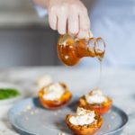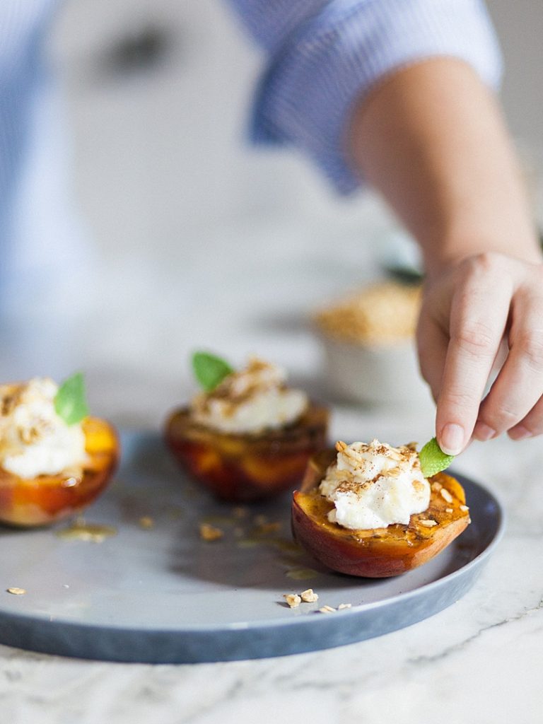 - Top the peaches with the cinnamon honey ricotta mixture.