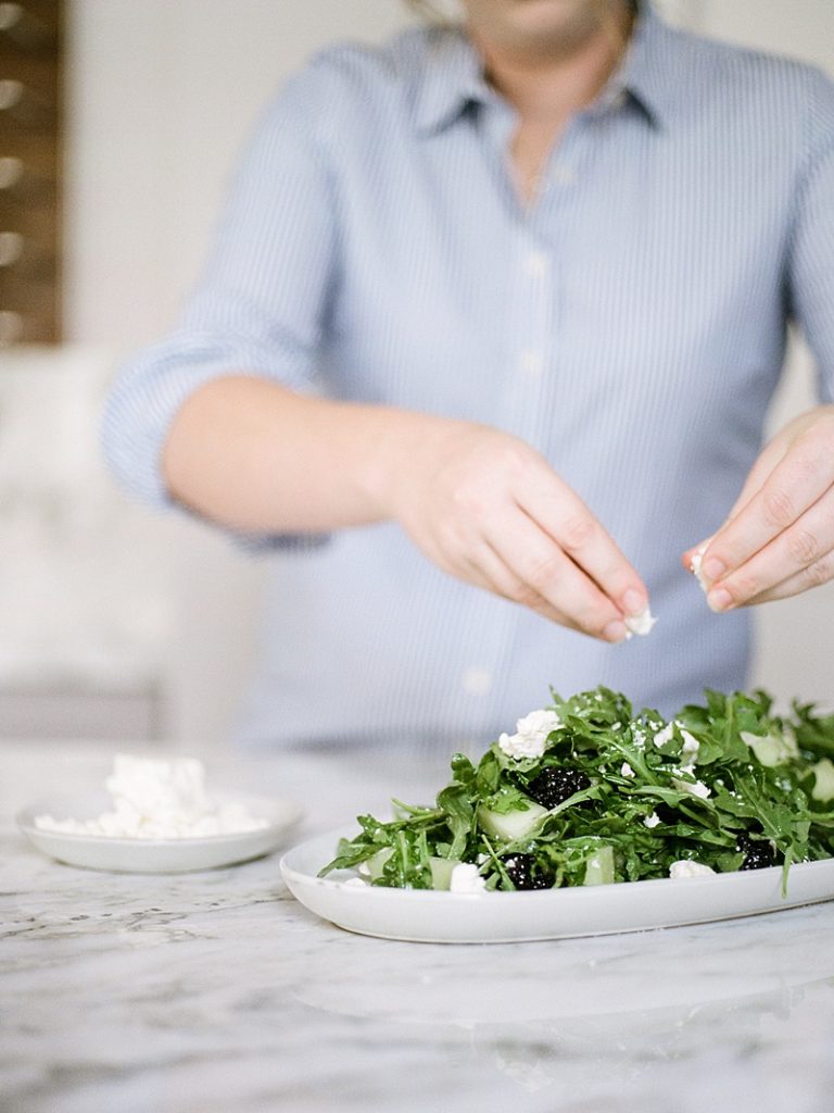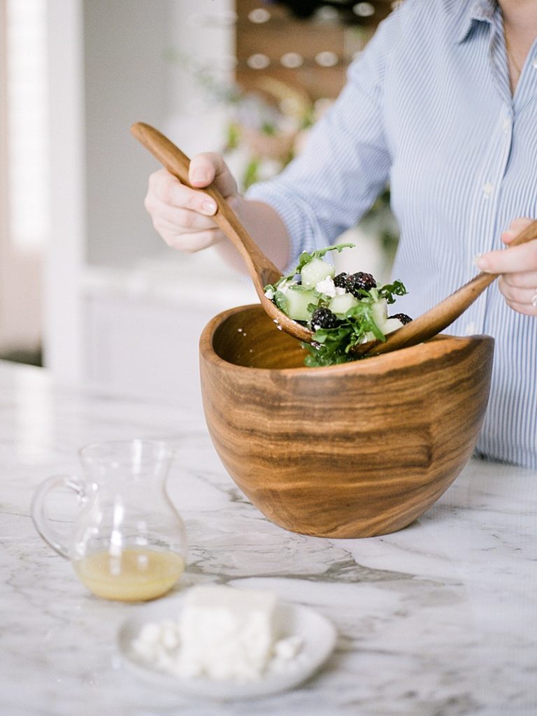 This arugula salad is perfect because it’s packed full of refreshing honeydew melon, tangy blackberries, salty feta cheese, and a drizzle of vinaigrette.