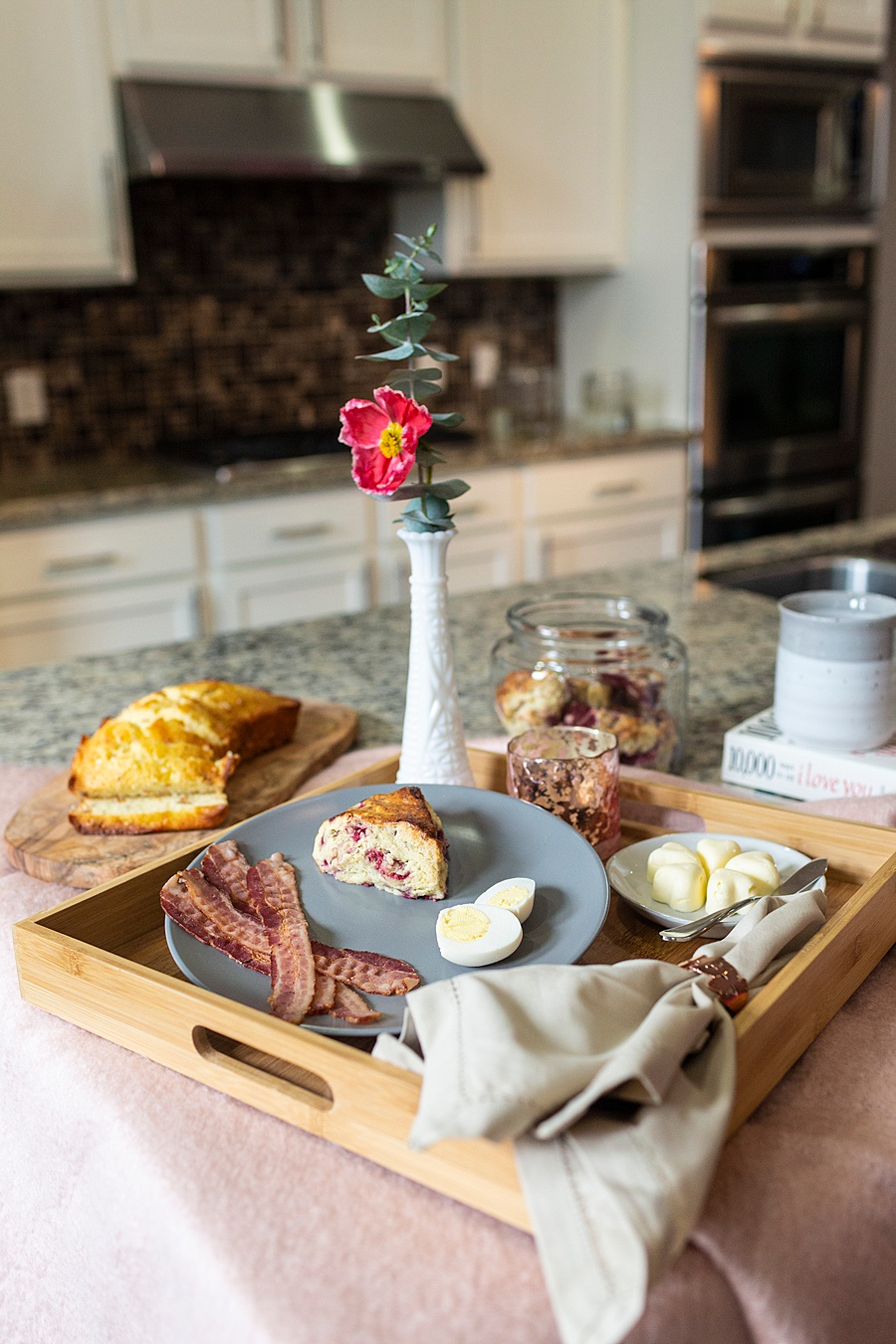 Feeling stuck on what to get your honey this Valentine’s Day? Why not make it a simple breakfast in bed? I’ve compiled a few of my favorite things into a lazy morning breakfast that we can enjoy under the covers. Here’s what you’ll want to include: