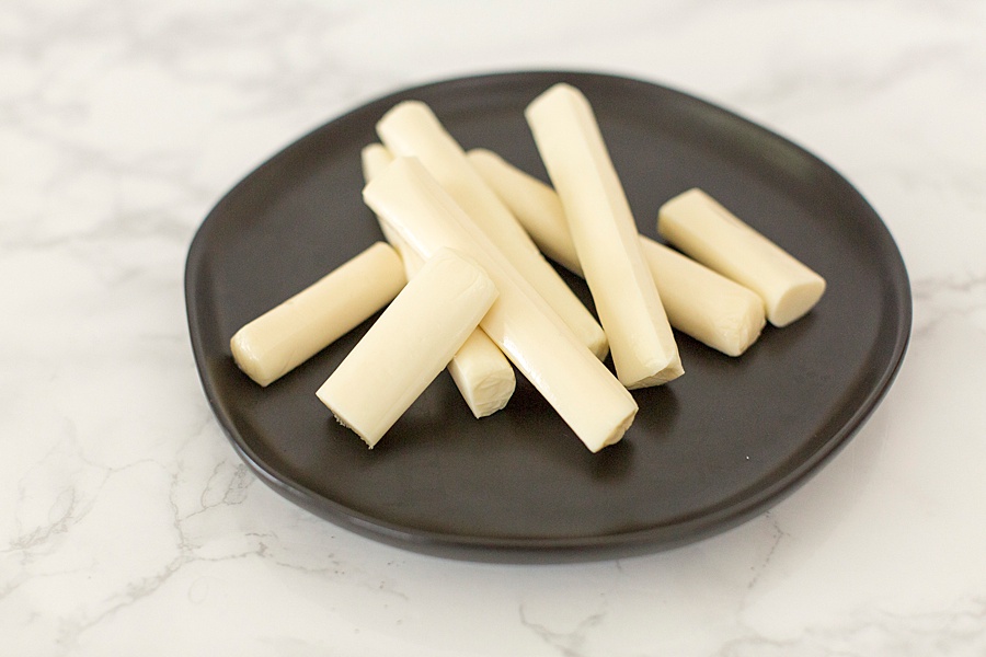 • 1 16oz mozzarella cheese sticks (cut in half)