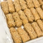 7. Once you've breaded all of your cheese sticks, put them in the freezer and allow to freeze completely.