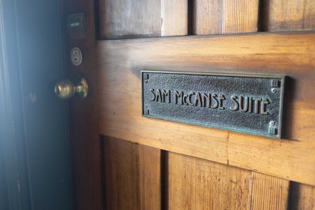After getting checked in and meeting Bella (one of the unofficial mascot dogs), I was shown my suite. Now, I will tell you – and the owners agree – that this is not 5 star accommodations. If you’re looking for the most modern of spaces to lay your head, this isn’t it. But what you will find is a clean, eclectic space that’s made up of thrift store furniture and meaningful touches. For instance, the suites are each named after a local historical figure from Mendocino County. And on the wall, you’ll find a little information about that person and their contributions to the area.