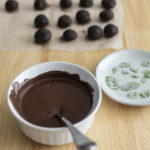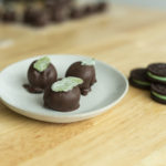 Move over cake balls, OREO Cookie Balls are the next new thing! And why not? They’re so much easier to make and can be made in a fraction of the time. Plus, you can also take your favorite OREO flavor and turn it into a cookie ball. These classic OREO sandwich cookies are ground up and mixed with cream cheese. They’re then rolled into a ball and covered in melted chocolate. And I topped my mint OREO cookie balls with these easy to make candied mint leaves for an elegant touch!They’re easy and delicious – just watch!