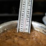 - Remove from heat and beat with a wooden spoon until mixture thickens and becomes creamy and cloudy.
