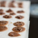 - Spoon out the mixture on parchment paper in 3 inch round blobs. They will harden at room temperature within a few minutes.