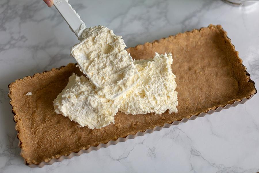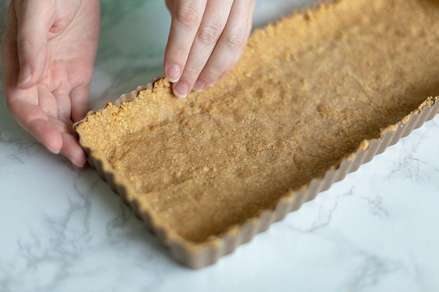 Step One. Add the graham cracker, melted butter, and 1 tablespoon sugar to a medium sized bowl and combine well or until the texture is similar to wet sand. Press the mixture into the bottom and sides of a small tart pan. Place the pans in the refrigerator for 1-2 hours to set.