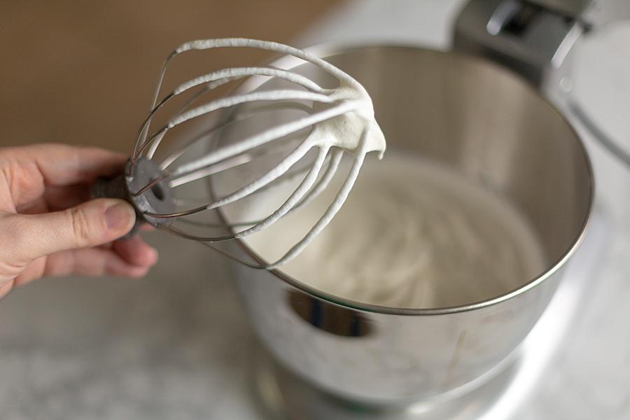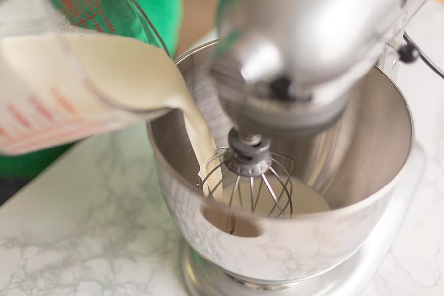Step Two. Add the heavy cream to a stand mixer and whisk until soft peaks form. Take out of the bowl and set aside.
