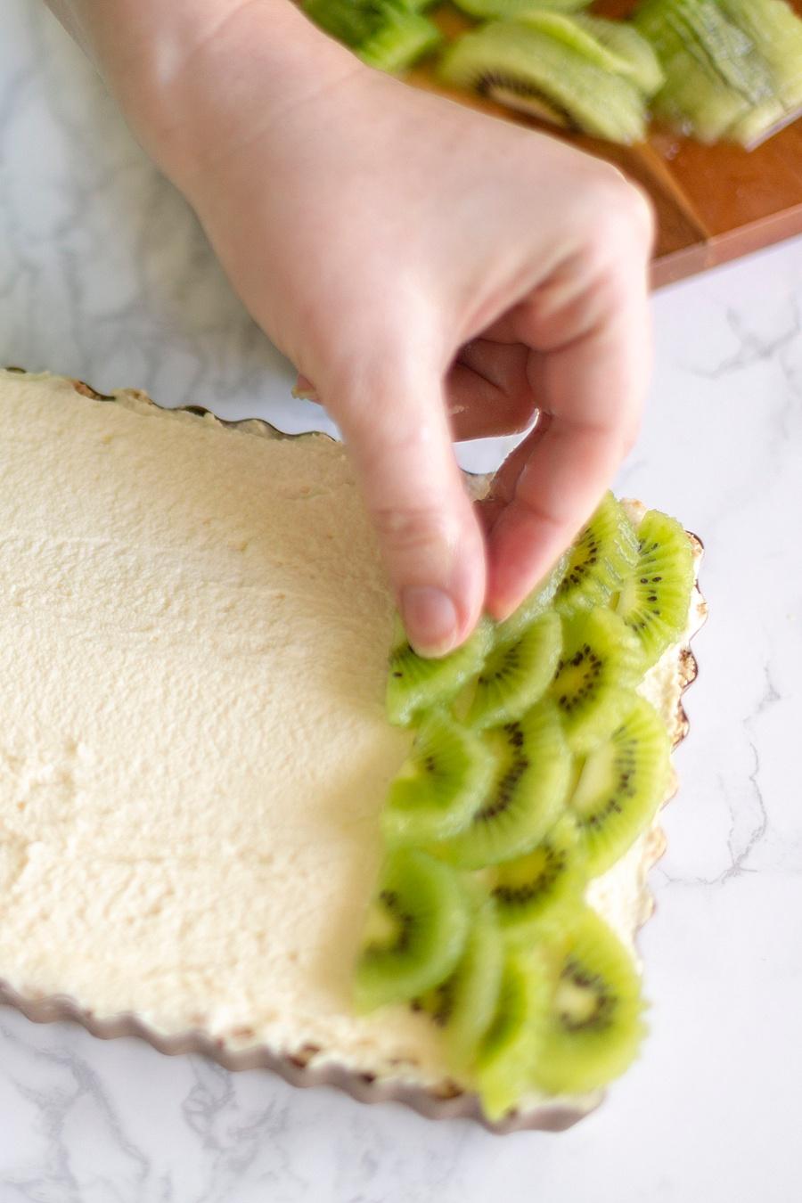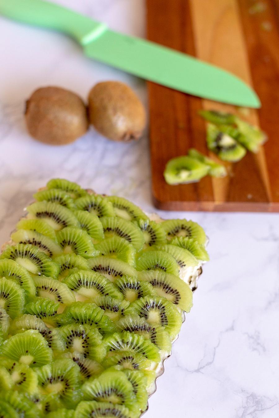 Step Five. Carefully spoon the filling into the tarts and place in the refrigerator for 1-2 hours to set. Top with fresh kiwi and serve immediately.