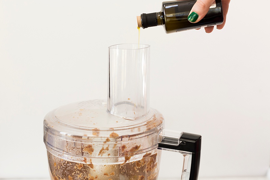 4. Slowly add in the extra virgin olive oil until it becomes a smooth dipping consistency.