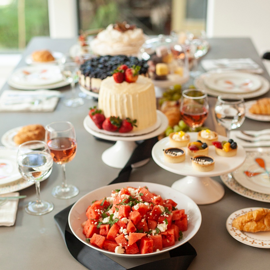 It’s no surprise that Houston is unreasonably warm during the summer months, so I wanted to make something that could also keep the guests cool and hydrated. Watermelon is the perfect fruit for any summer get together! It has a high water content, so it will keep that fluid intake up, plus it’s not super messy when you already have it cut up like I did for this salad. Ready to put this one together? Here we go…