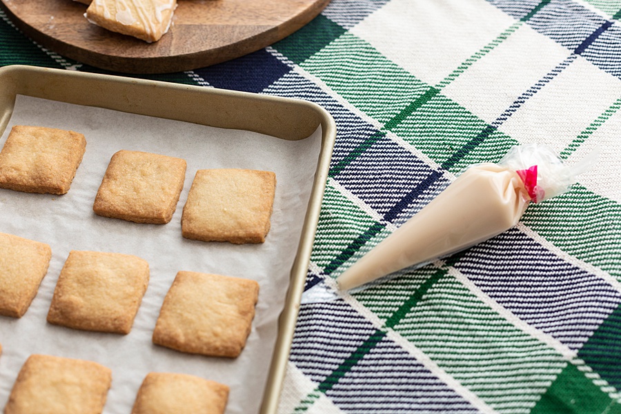 - Spoon the icing over the cookies or put it in a piping bag for more control over where it goes. Let the glaze dry and serve.