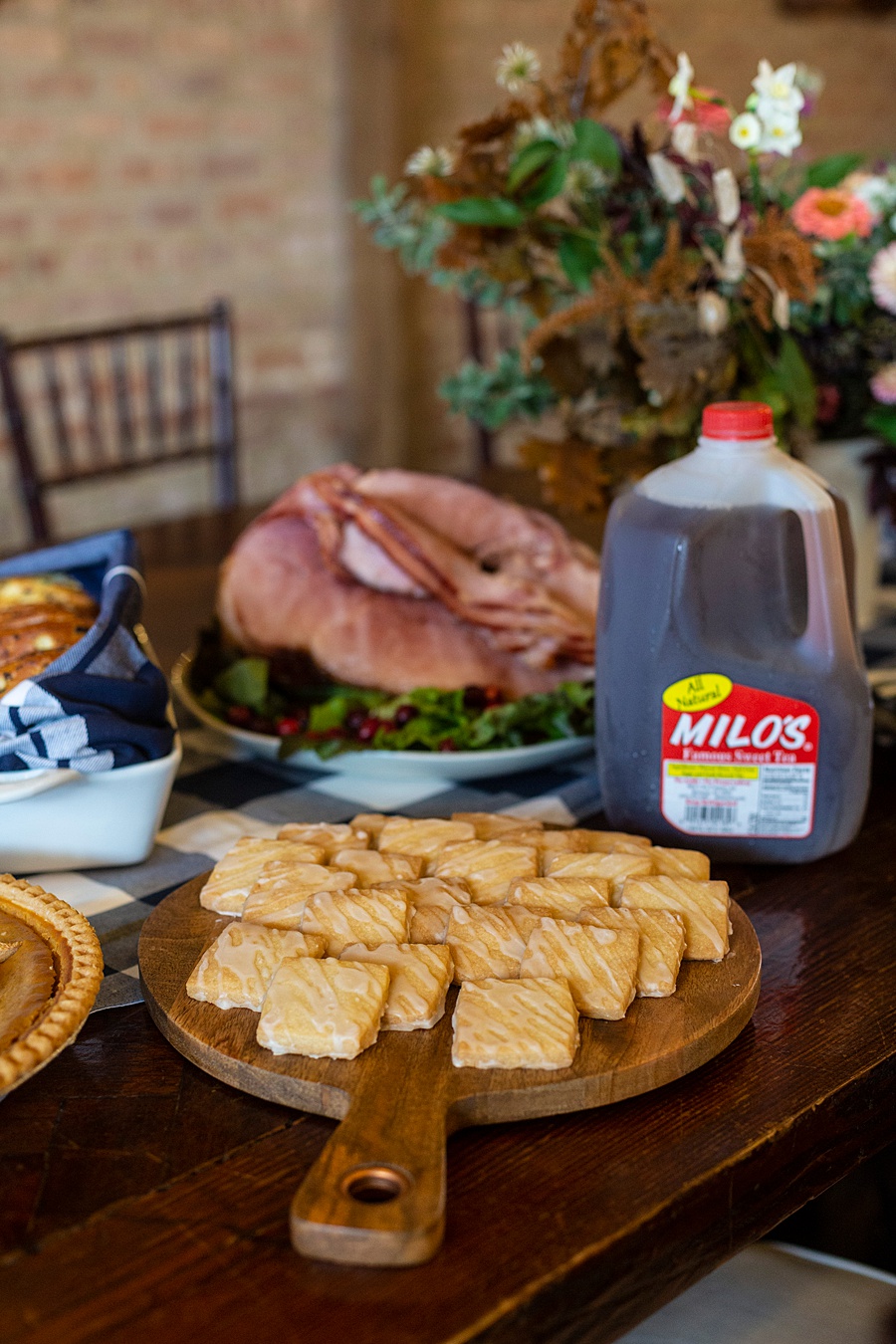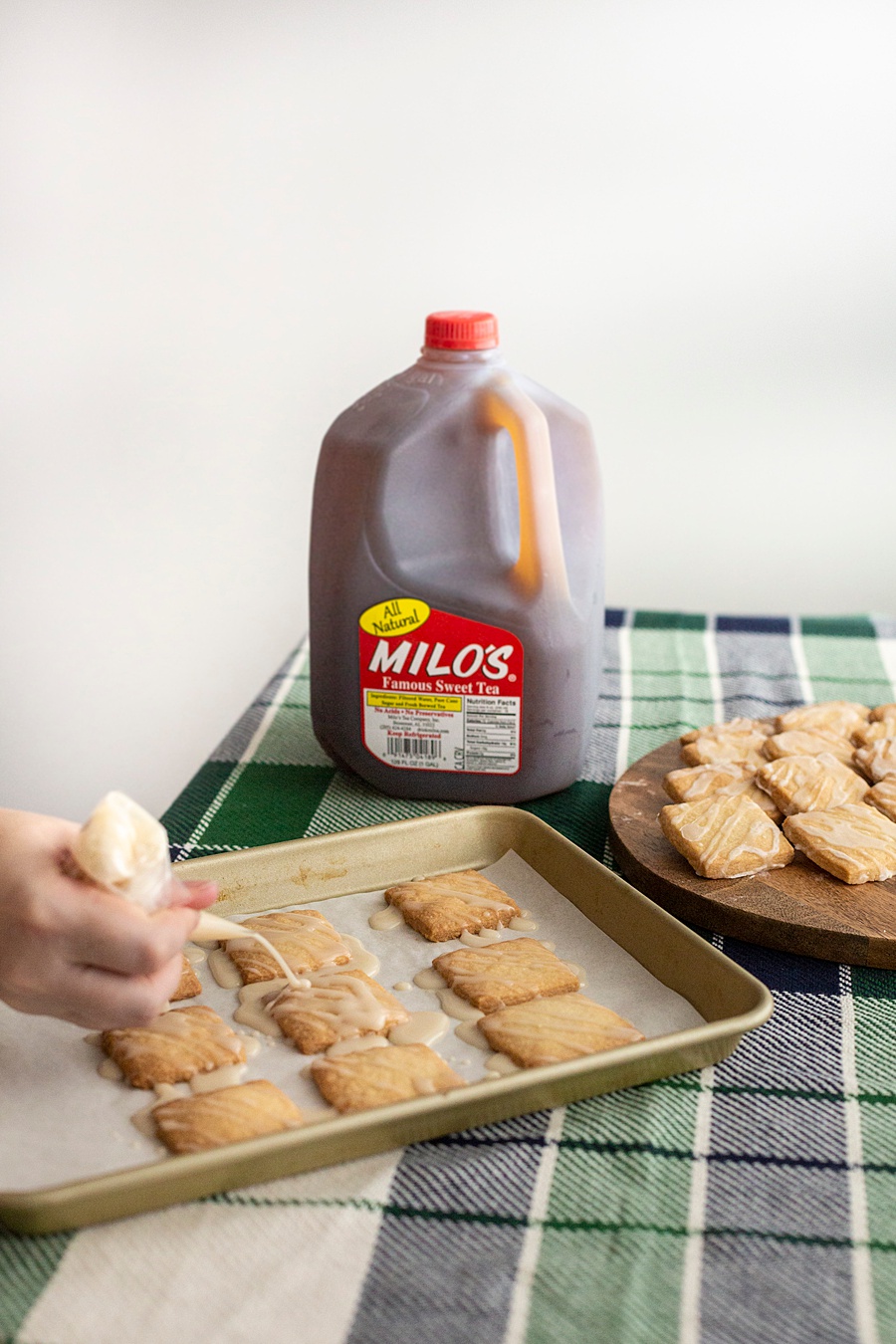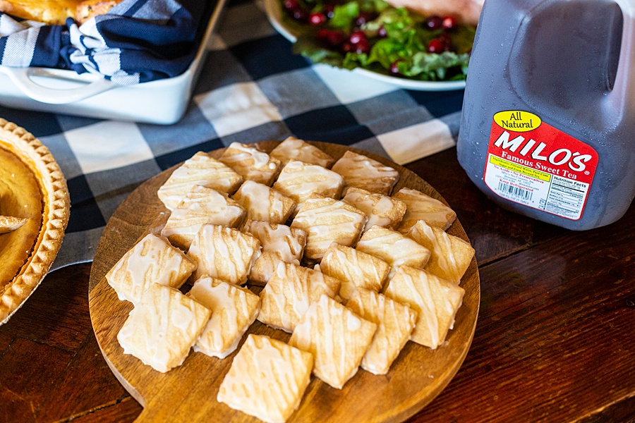 I served Milo’s at a recent “Friendsgiving” event with some gal pals and we had the best time sipping our teas and chatting about what we were thankful for. I also took it a step further and made short bread cookies with sweet tea icing. Did you even know there was such a thing? Well now there is! These crispy shortbread cookies were given a generous drizzle of sweet tea icing and boy, do these two make a pair! Wash them down with a glass of sweet tea and you’ve got a great combination!