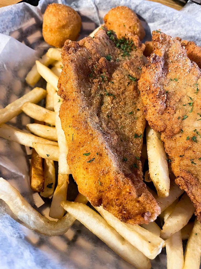 This is definitely a locals place. Lots of people chatting, riding their bikes right up to the patio, and bringing their dogs. But the important part, how was the food? The food was awesome! The fried catfish had a great flavor to it and I could have eaten my weight in the beignets. I definitely recommend coming here if you’re looking for good seafood!