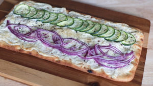 Recently, I made a cheesy flatbread topped with thinly sliced zucchini and red onions. They’re colorful, savory, and mouth-watering! Who wouldn’t want a little taste of this?